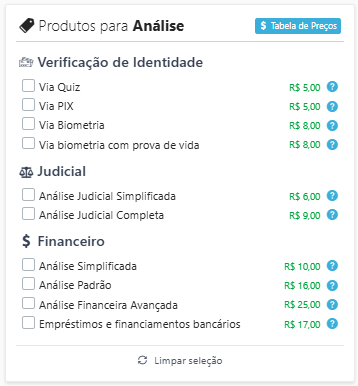 Nesta seção são apresentadas explicações sobre cada tipo de consulta e validação disponível na Análise de Ficha. O objetivo é esclarecer o que cada análise entrega, qual a sua finalidade e em quais cenários ela pode ser utilizada, facilitando a escolha correta no momento da solicitação.