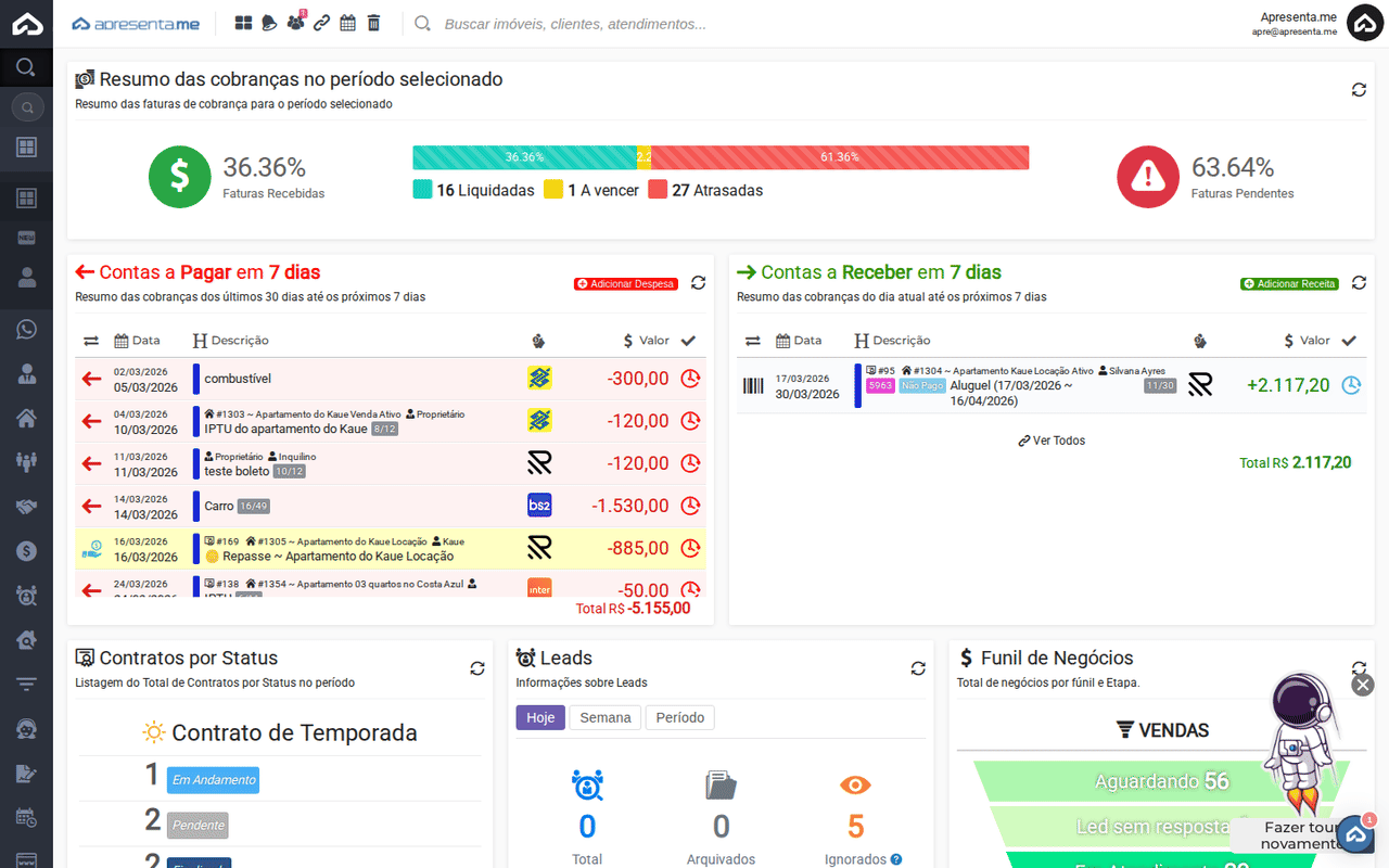 A tela de Negativações de Cobranças centraliza o acompanhamento de todas as solicitações de negativação enviadas pelo sistema para os serviços de proteção ao crédito via ApBank. Aqui você pode consultar o status de cada negativação, verificar a fatura vinculada e acompanhar o resultado do processamento.