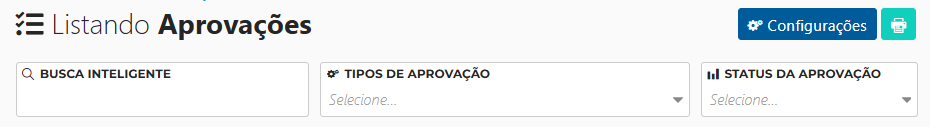 - Status da aprovação: Possibilita filtrar pelo status que se encontra cada solicitação, como: