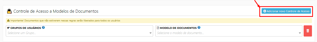 Nesta seção, é possível definir quais grupos terão permissão para acessar e utilizar determinados modelos de documentos.