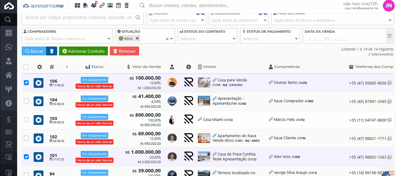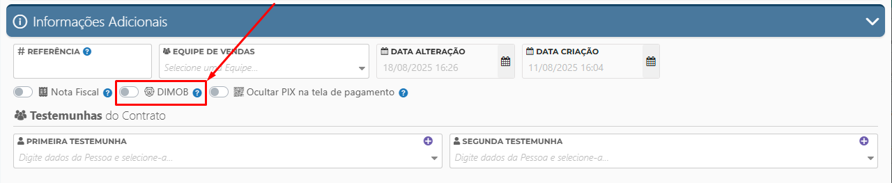 - Certifique-se de que todos os contratos e itens relevantes estejam com a opção DIMOB habilitada antes da geração.