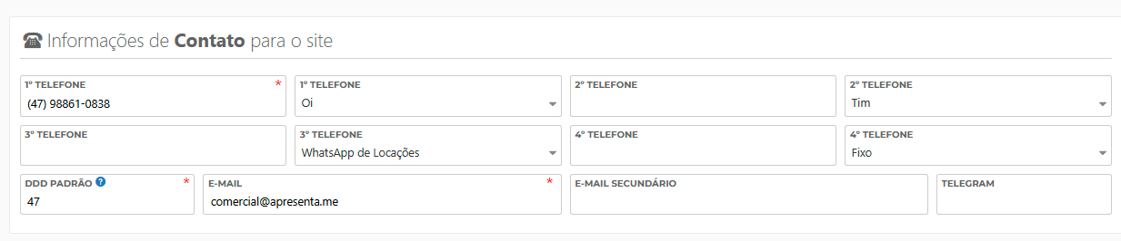 - E-mail principal (ex.: comercial@apresenta.me)