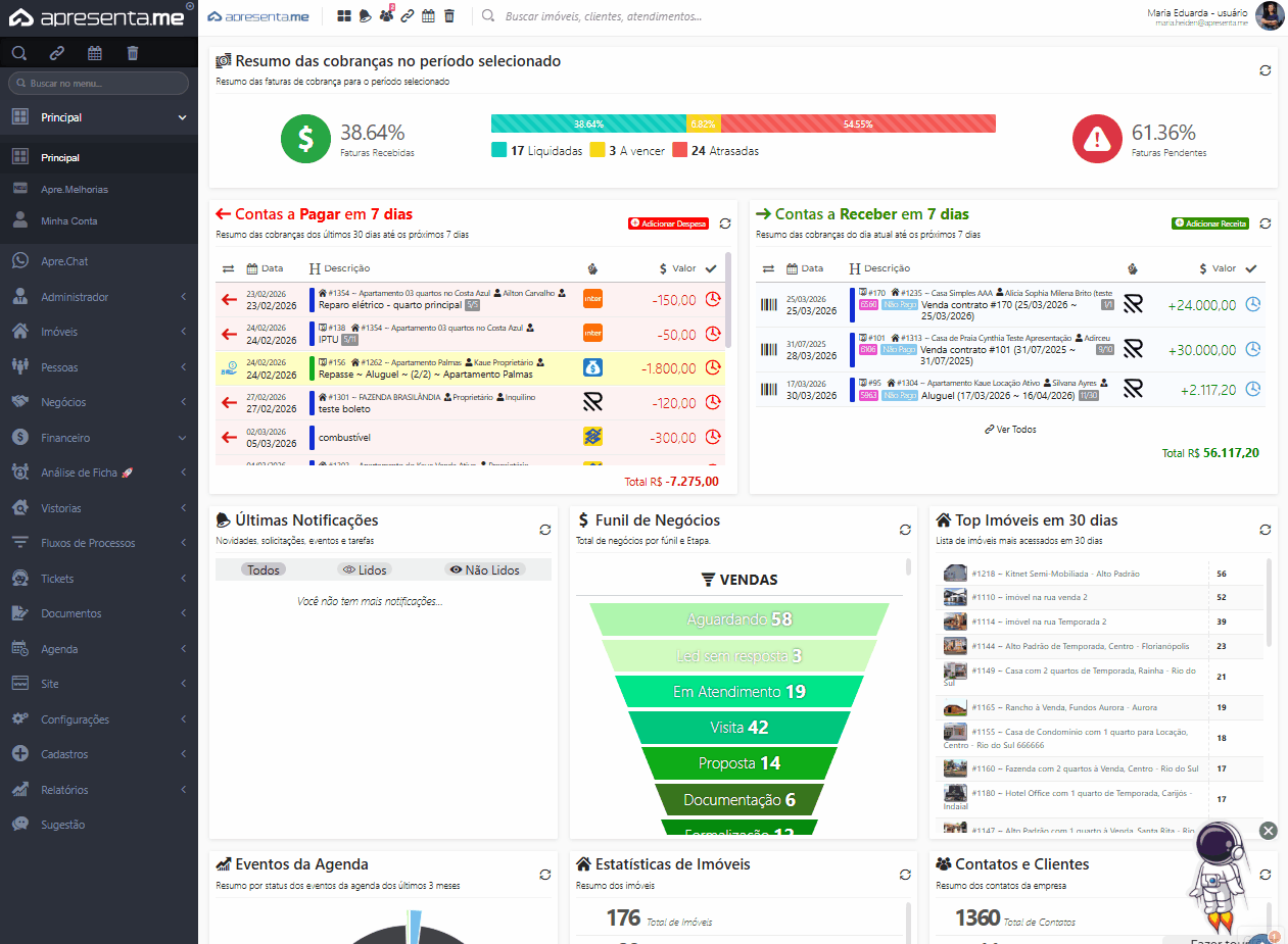 - Busca por texto: código, nome do proprietário, inquilino ou descrição.