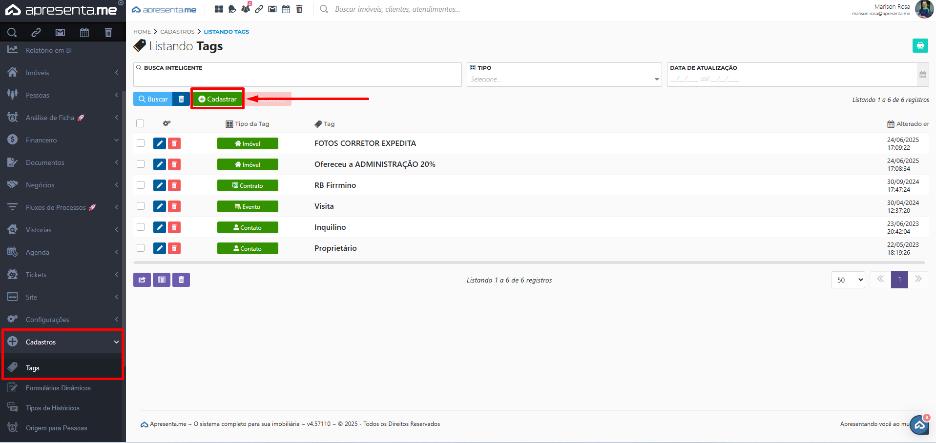 Como cadastrar Tag no sistema?