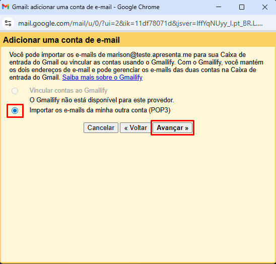 - ❌ Não será possível receber nem enviar e-mails dessa conta pelo Gmail
