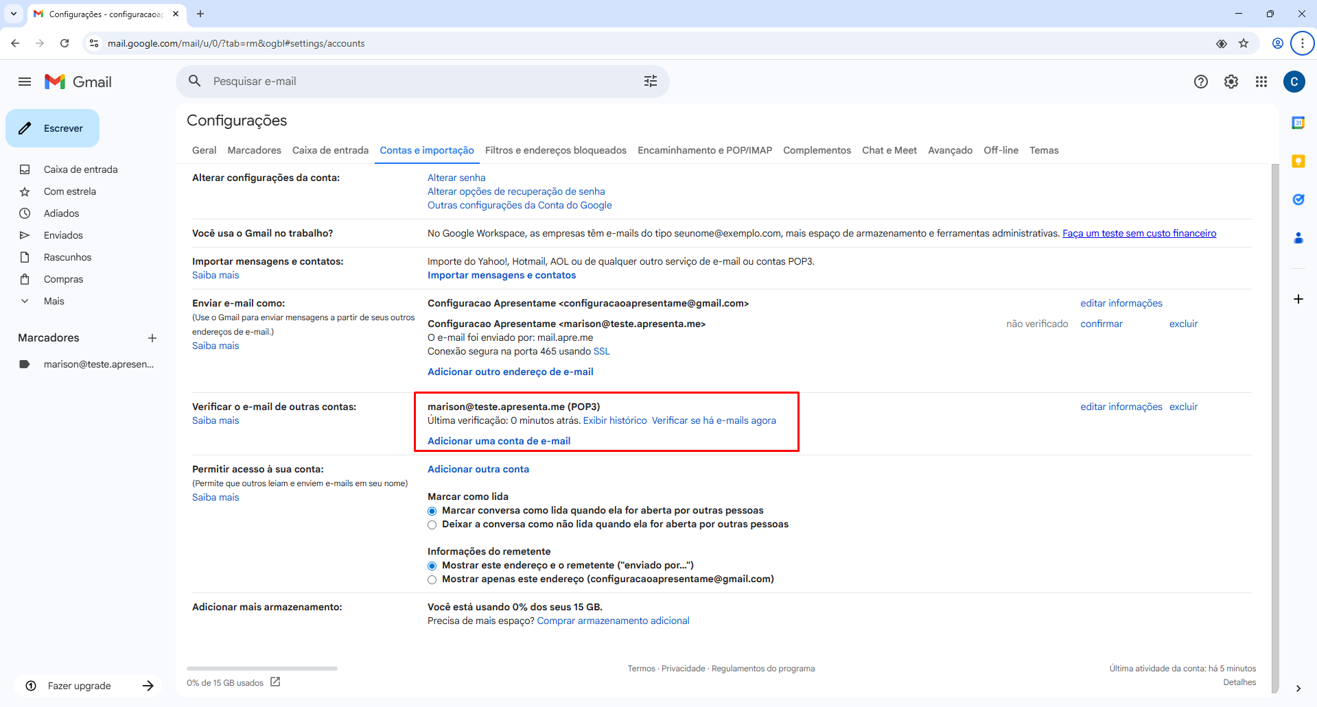Concluída essa etapa de confirmação, seu e-mail estará sincronizado com o Gmail.