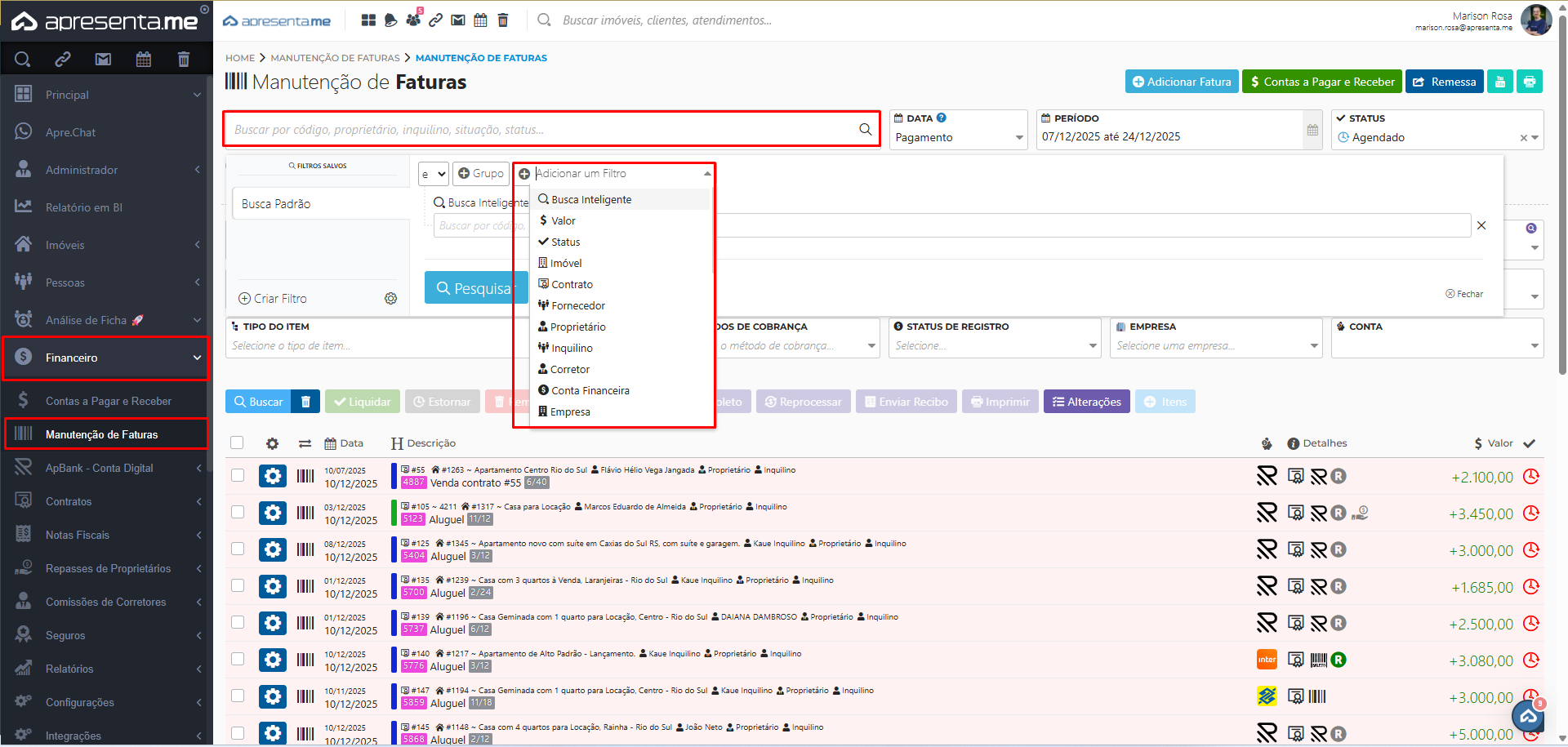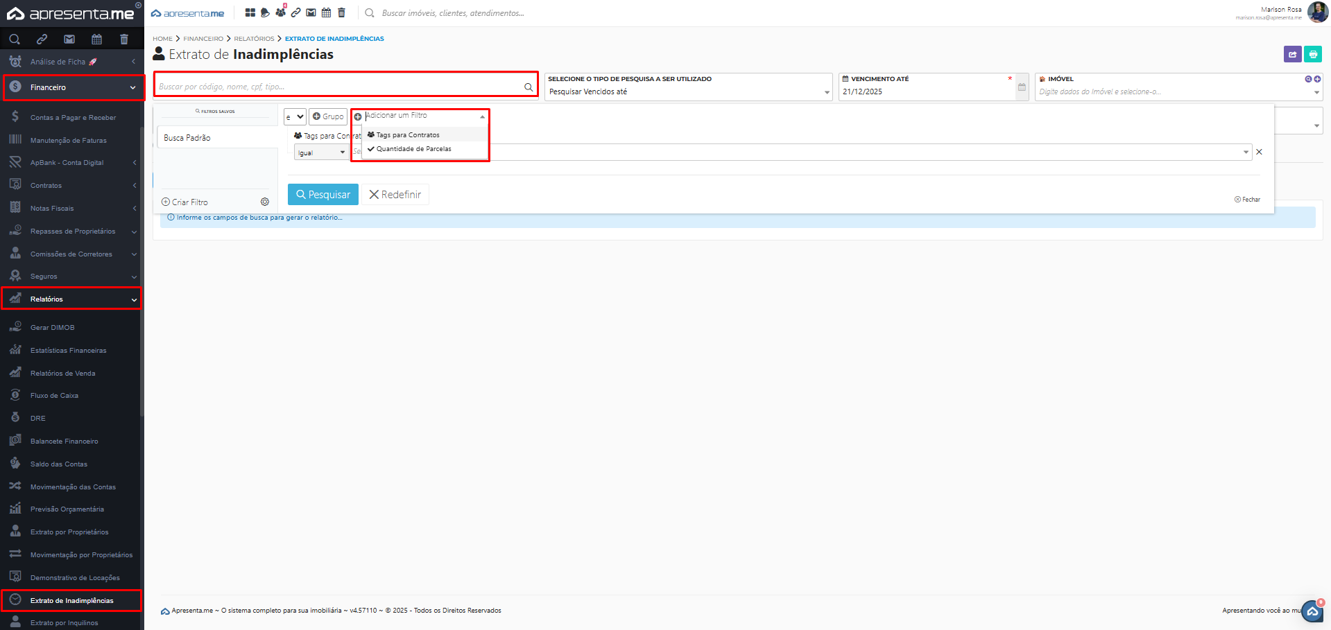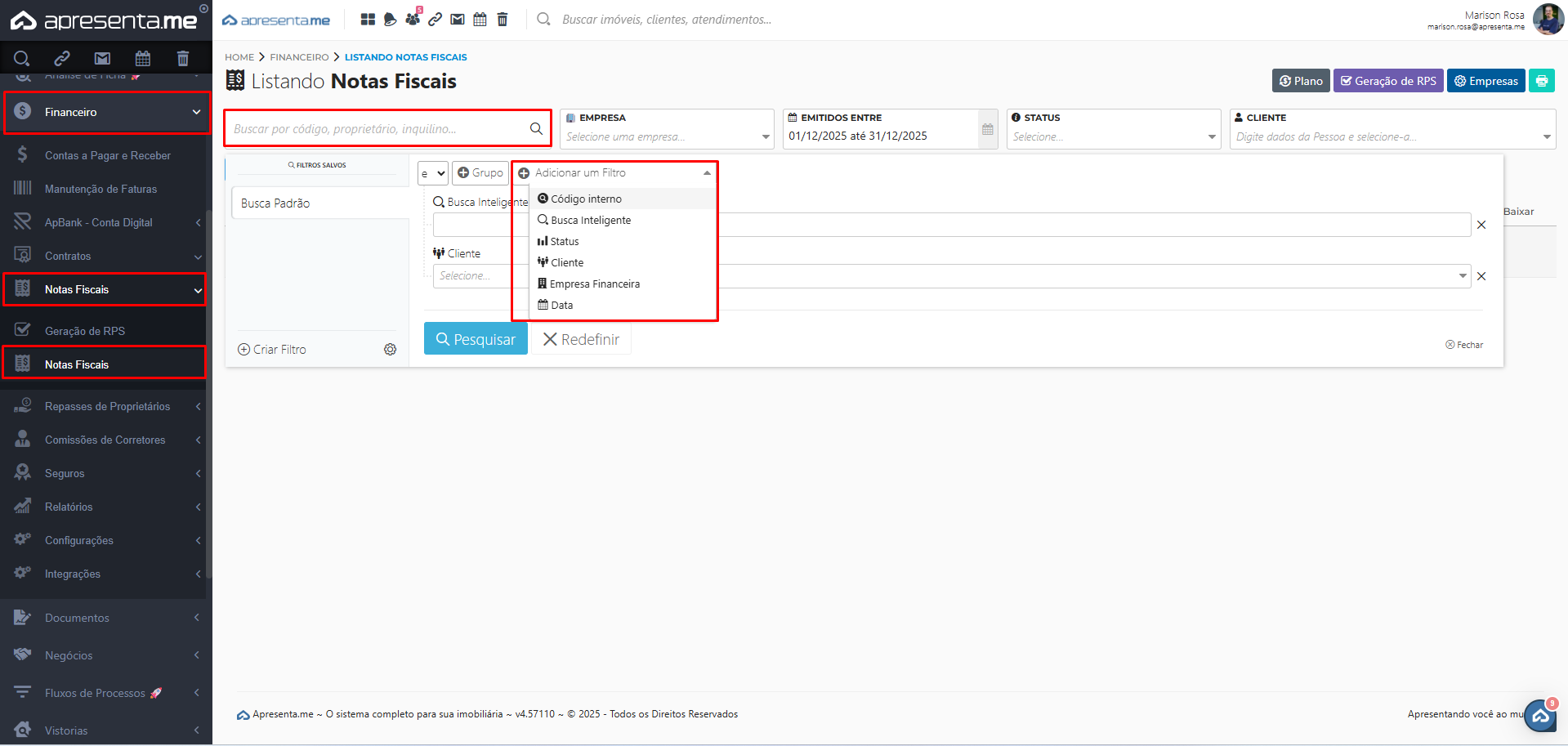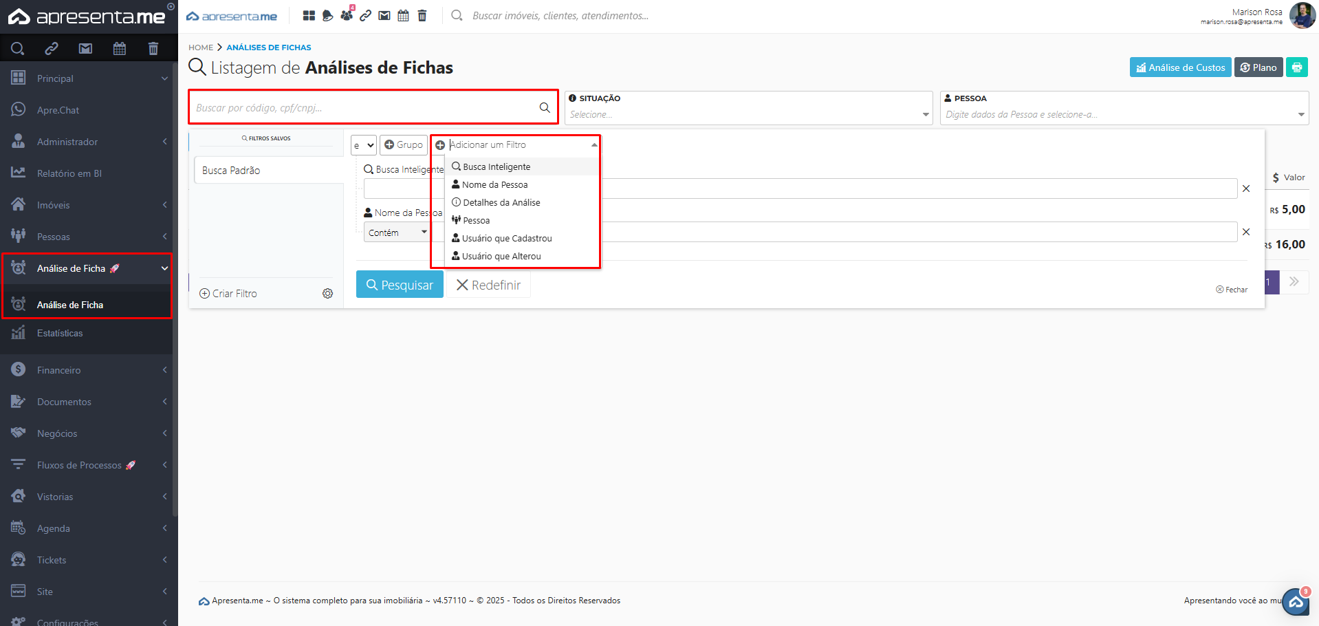 Os filtros avançados permitem fazer buscas mais específicas dentro do sistema, além de possibilitar que você crie filtros personalizados e deixe-os pré-definidos para agilizar pesquisas futuras.