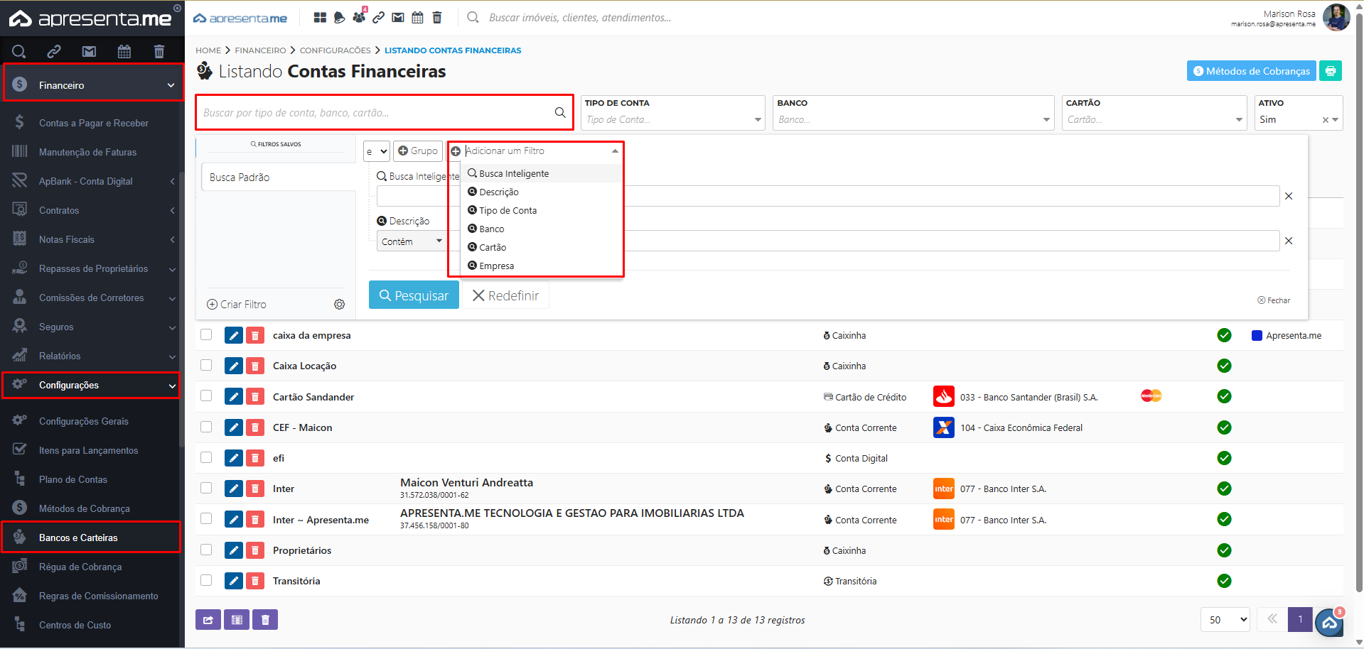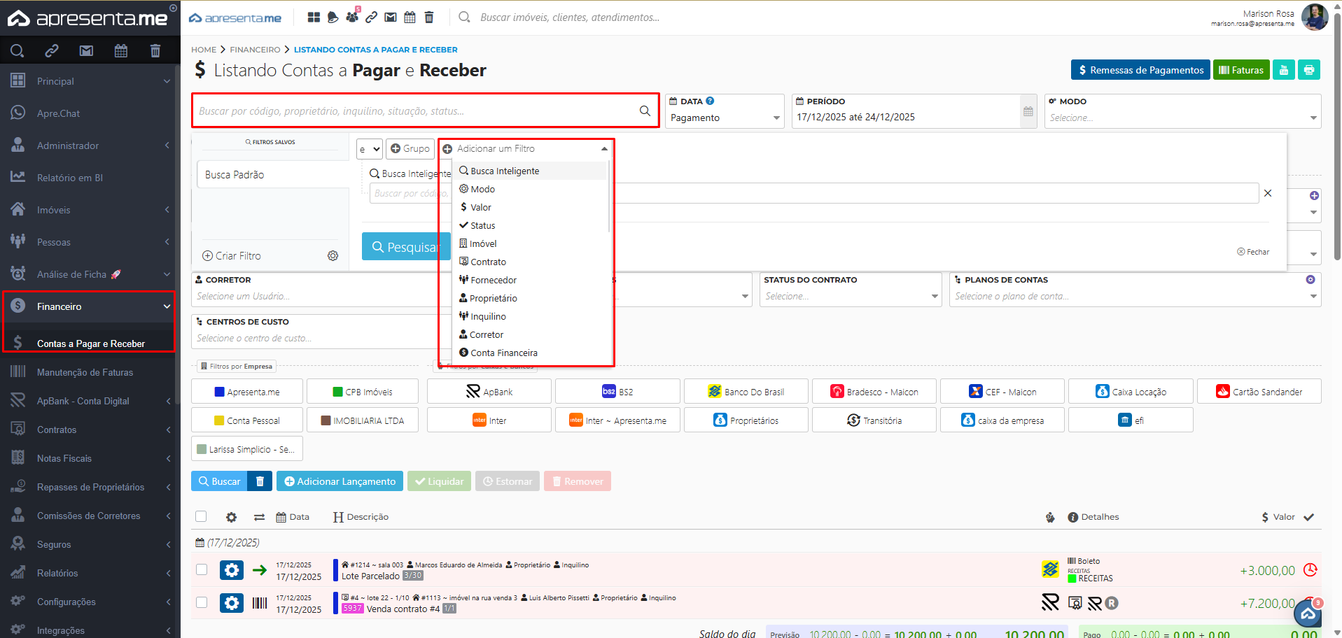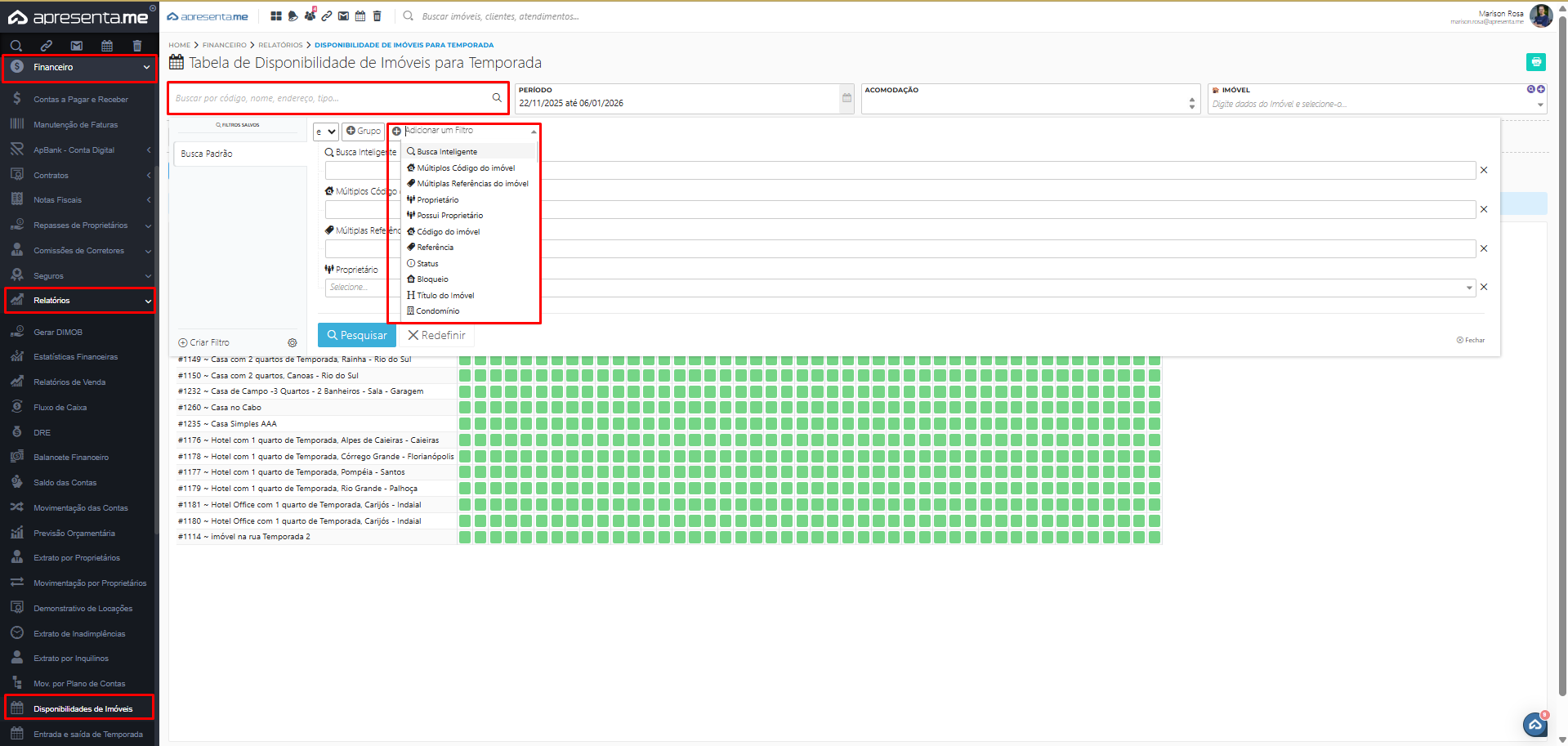 Os filtros avançados permitem fazer buscas mais específicas dentro do sistema, além de possibilitar que você crie filtros personalizados e deixe-os pré-definidos para agilizar pesquisas futuras.