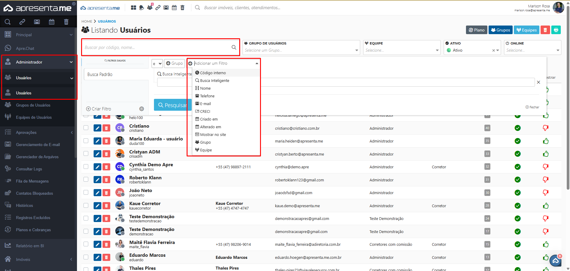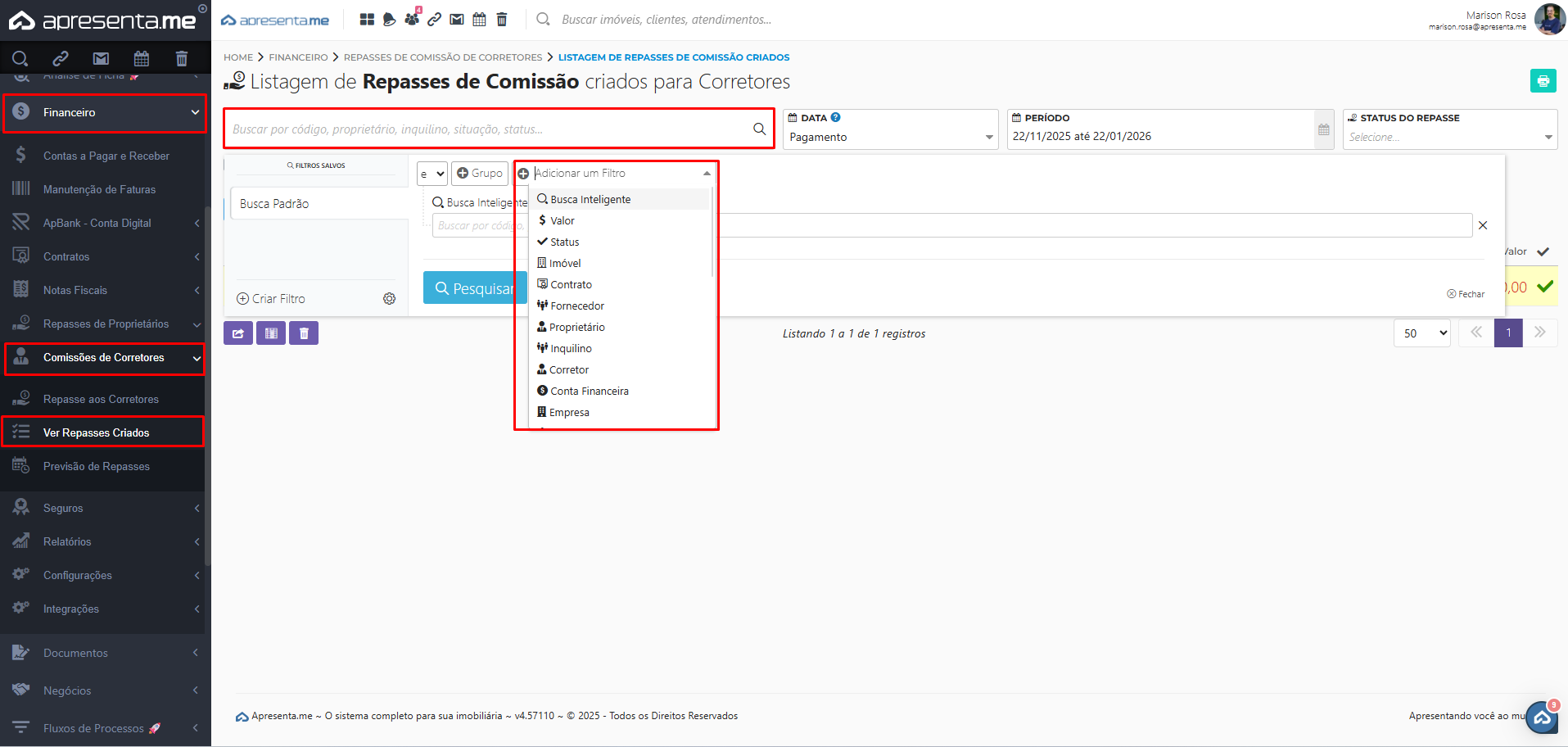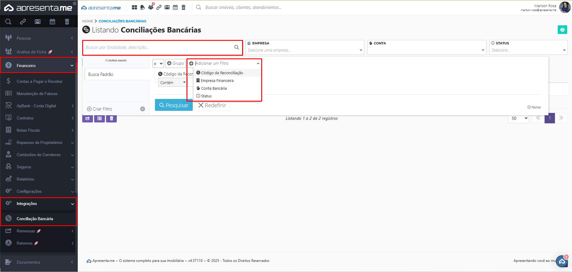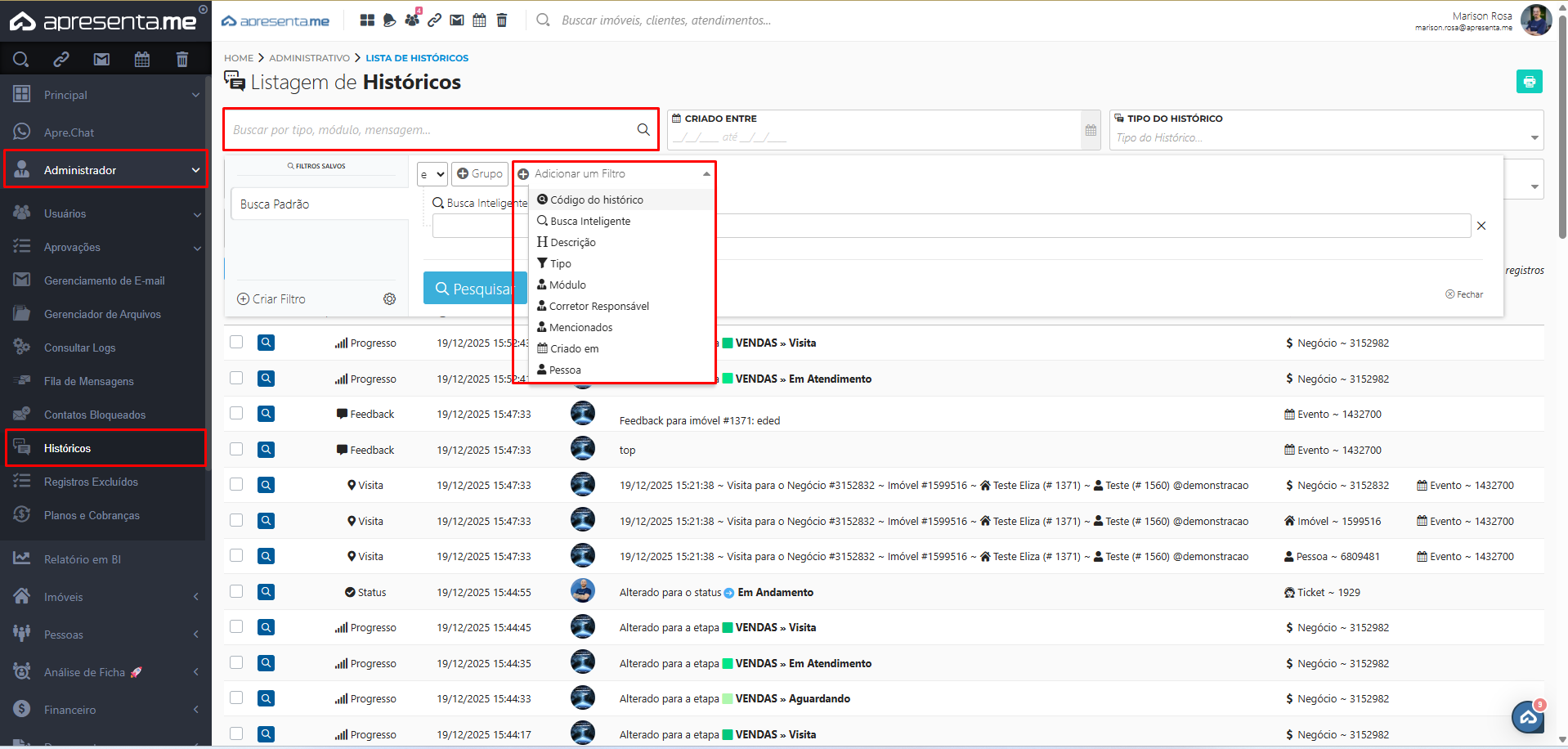 Os filtros avançados permitem fazer buscas mais específicas dentro do sistema, além de possibilitar que você crie filtros personalizados e deixe-os pré-definidos para agilizar pesquisas futuras.