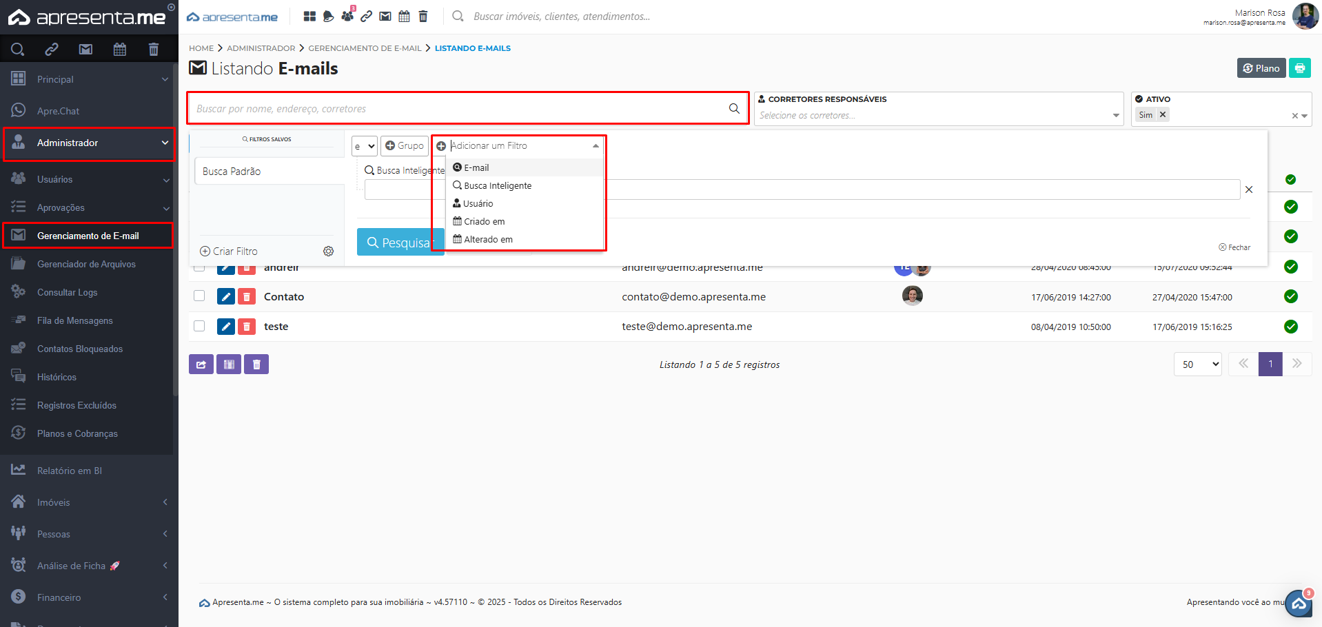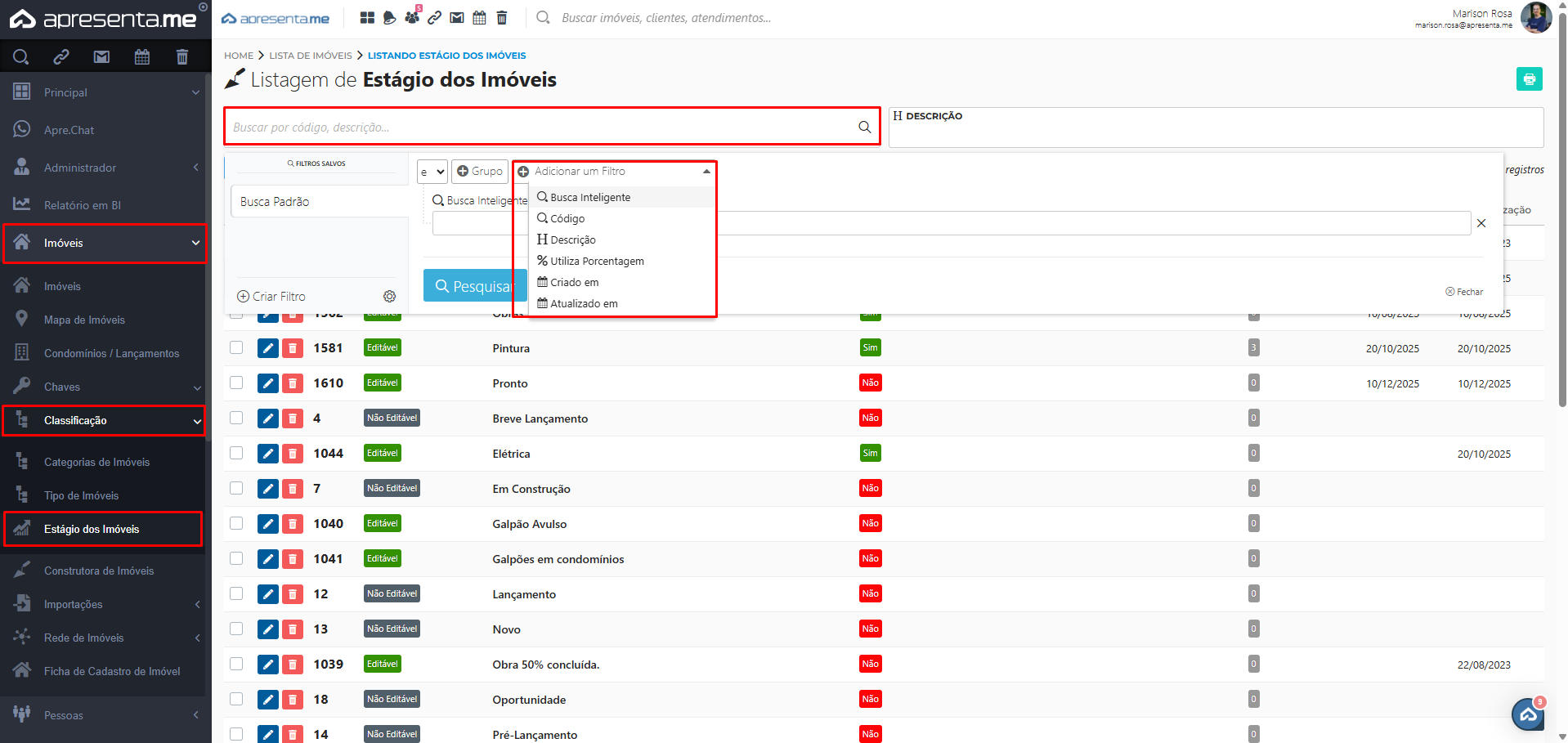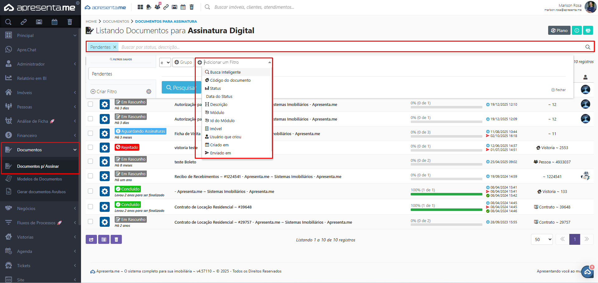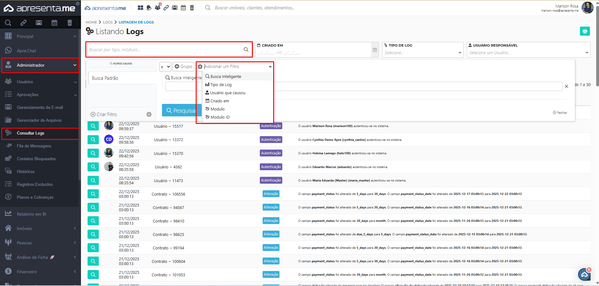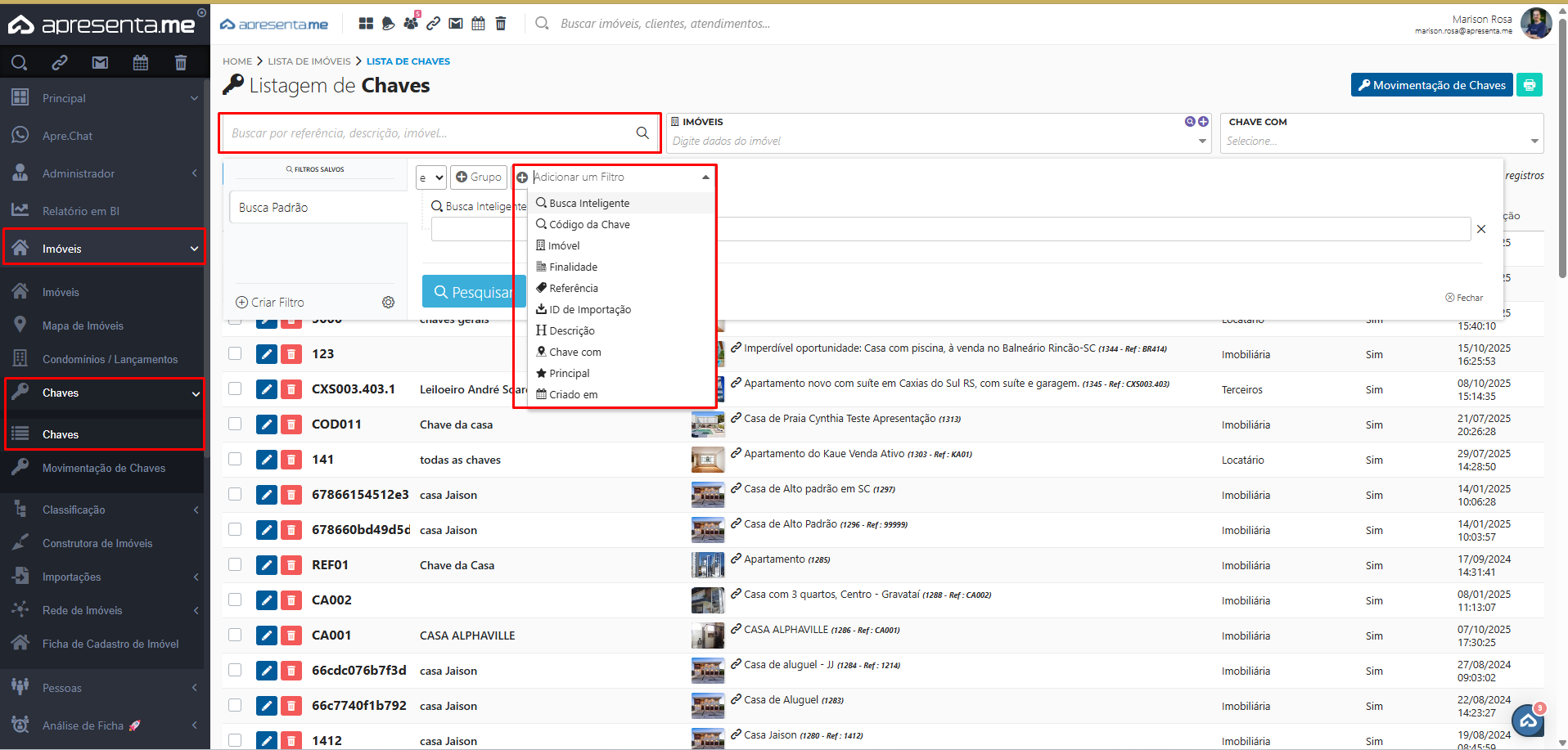 Eles estão disponíveis em diversos módulos, como Imóveis, Pessoas, Contratos, Negócios, entre outros. Cada módulo possui seus próprios critérios de filtro avançado, ajustados à realidade e às informações daquele tipo de cadastro, garantindo uma pesquisa mais precisa e eficiente.