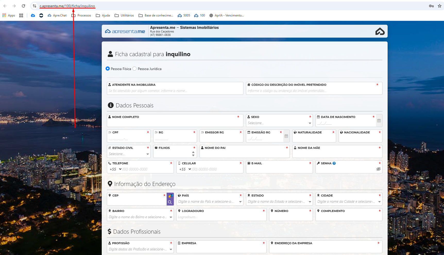- Cadastro do locatário responsável pelo imóvel.
