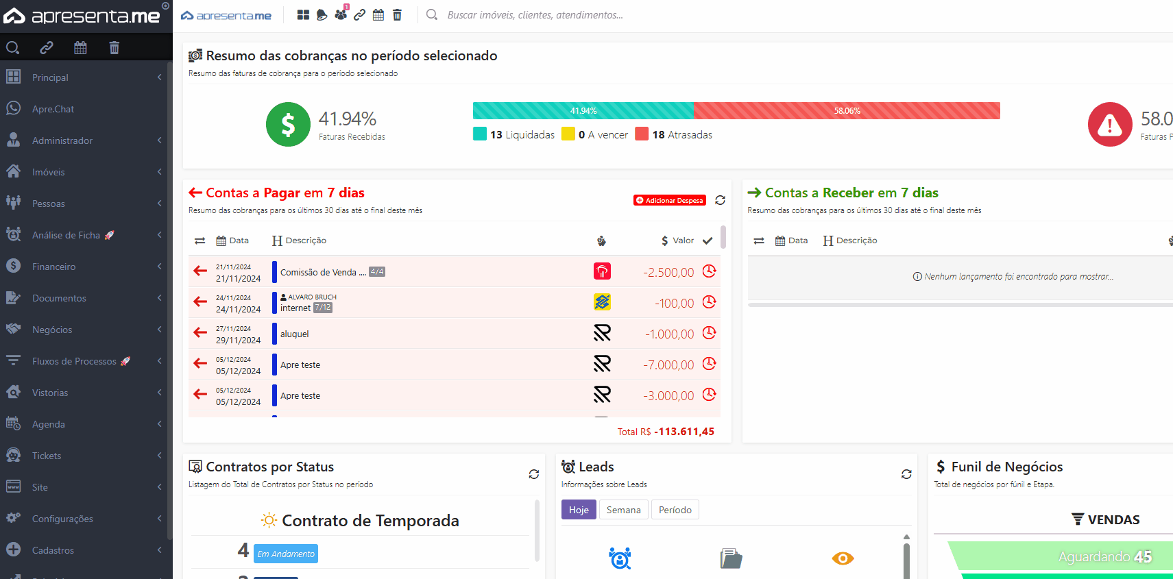 - Parceria pela Rede de Imóveis: Notificação quando alguma outra imobiliária parceira, Apresenta.me, solicita uma parceria com um imóvel seu;