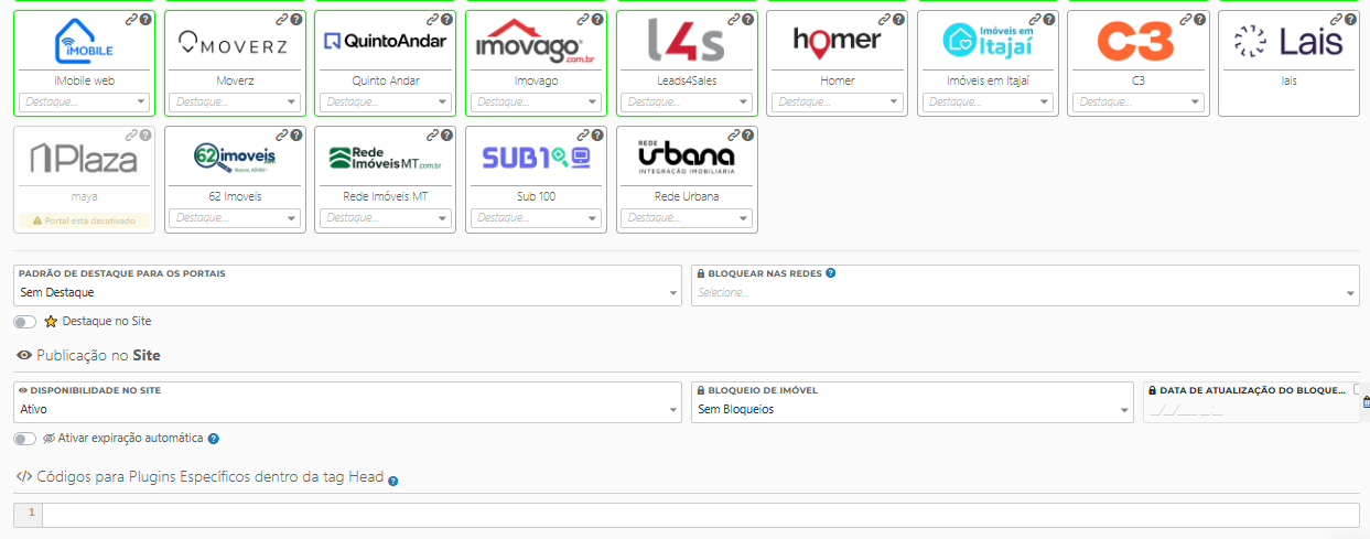 Padrão de Destaque para os Portais: define se o imóvel terá destaque especial em portais parceiros (ex.: “Super Destaque”, “Destaque Premium”) ou será listado normalmente.