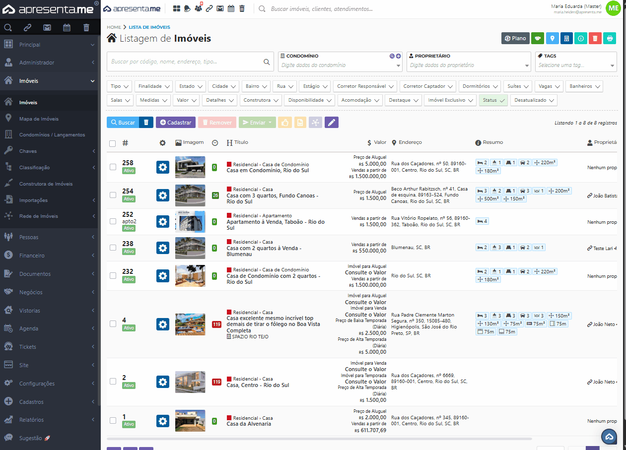 Essas exibições garantem maior destaque visual e ajudam o usuário final a identificar rapidamente informações importantes sobre o imóvel.