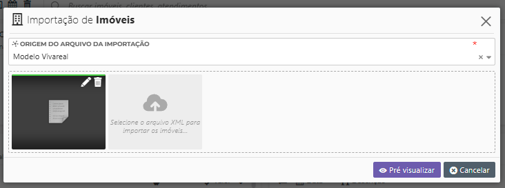- Clique em Pré-visualizar para conferir a lista de imóveis que serão importados.