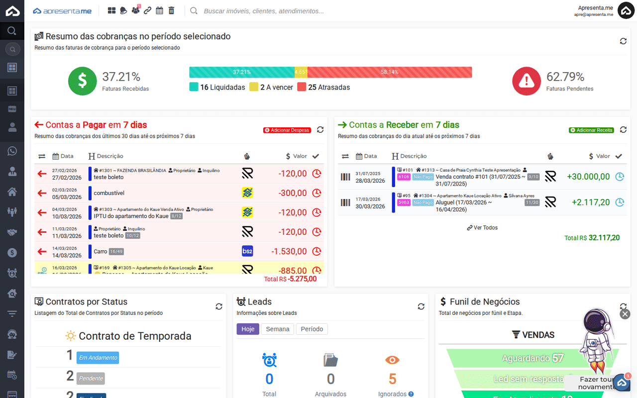 O recibo de recebimento é um documento gerado automaticamente pelo sistema para cada fatura que foi paga ou recebida. Ele comprova o pagamento e pode ser enviado ao inquilino, proprietário ou cliente como confirmação da quitação.
