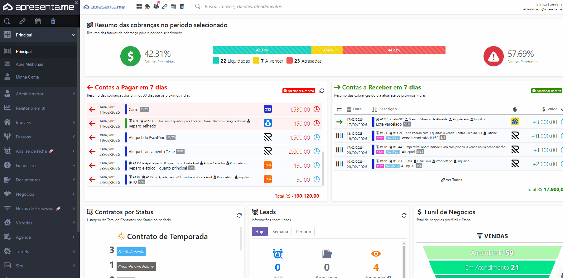 - Acompanhar movimentações vinculadas a clientes e imóveis;