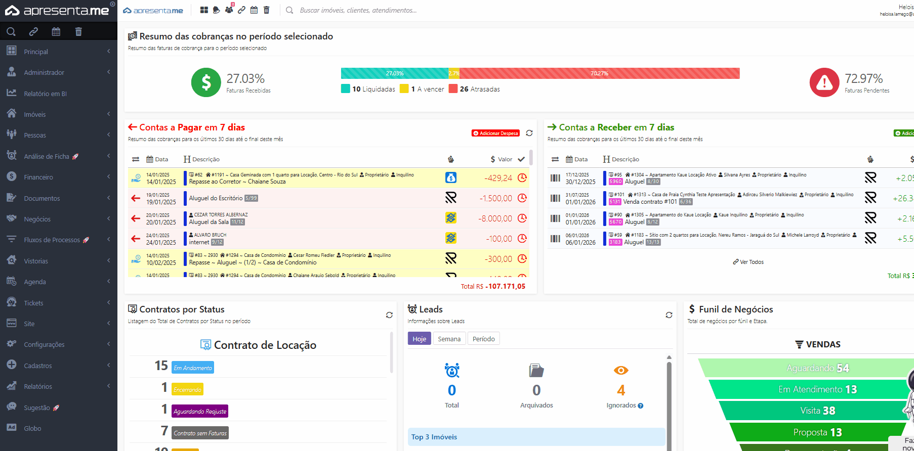 Define o intervalo de datas analisado (ex.: 01/12/2025 até 31/12/2025). Todos os gráficos e tabelas respeitam esse recorte.