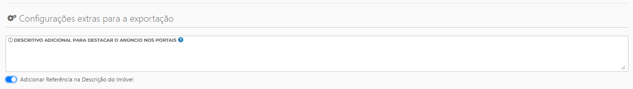 - Adicionar referência na descrição do imóvel: adiciona o código informado na referência do imóvel no campo descritivo dos imóveis