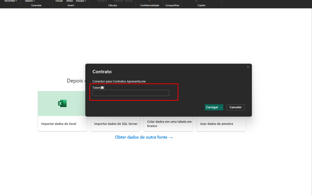 3. Ao abrir o arquivo, no Power BI, irá solicitar o token