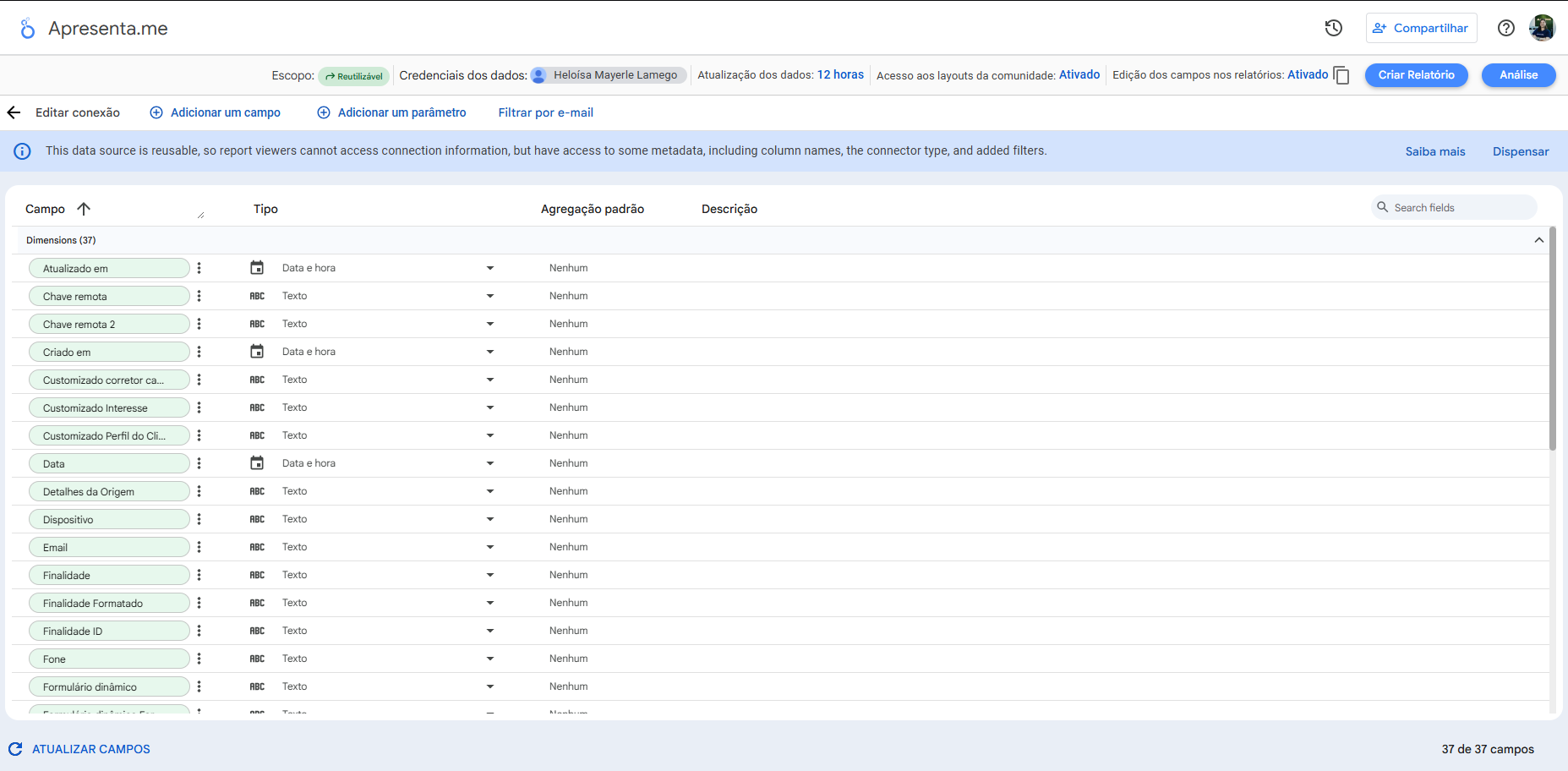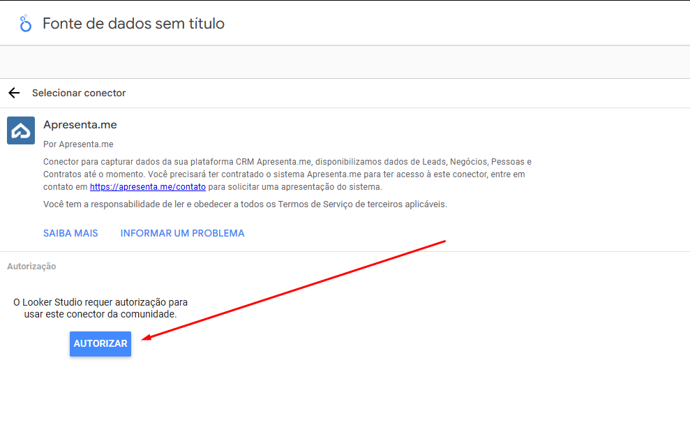 2. Irá trazer a página do Looker Studio para autorizar o Apresenta.me, clique em "autorizar" e realize seu login.