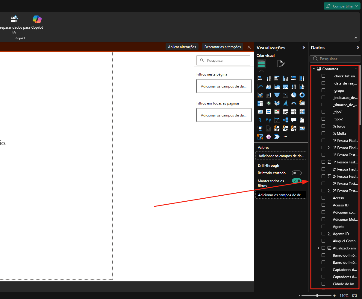 4. Ao adicionar o token e clicar em "carregar", as informações trarão na lateral do Power BI