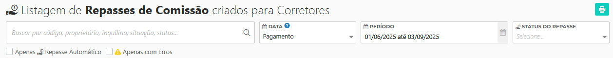 👉 Para ver repasses agendados, use o filtro Status do Repasse = Agendado.