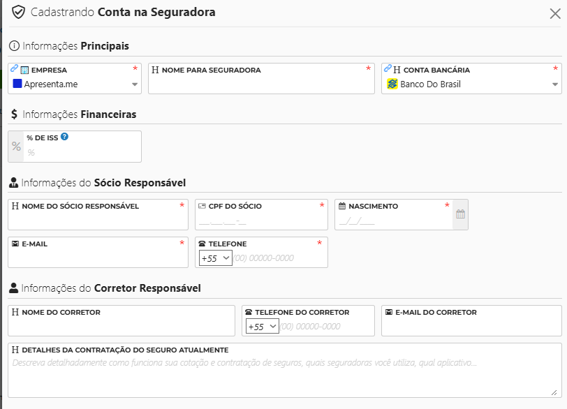 Com esses passos, você cadastra corretamente uma conta na seguradora no sistema.